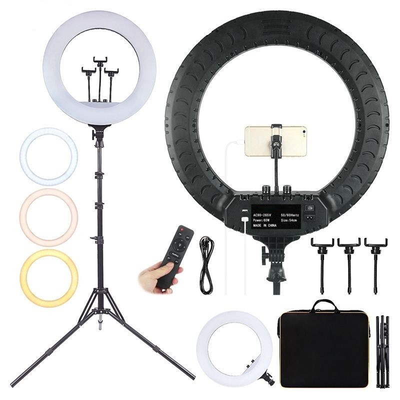 رینگ لایتها امروزه به یکی از پرطرفدارترین ابزارها در زمینهی عکاسی و فیلمبرداری تبدیل شدهاند و استقبال فراوان از آنها باعث شده تا شاهد تنوع قابل توجهشان در بازار باشیم. رینگ لایت مدل RL-18 یکی از محصولات پرطرفدار در بازار است و ویژگیها و قابلیتهای مختلفی را در خود میبیند. پایهی این رینگ لایت طولی معادل 210 سانتیمتر دارد و قدرت خروجی آن هم معادل 55 وات است. قطر بیرونی رینگ لایتها یکی از مهمترین خصوصیات آنها قلمداد میشود و این میزان در رینگ لایت مدل RL-18 معادل 45 سانتیمتر است. همچنین، در این رینگ لایت دو عدد پورت USB تعبیه شده و میتوان در حین عکاسی به صورت همزمان گوشیهای هوشمند را شارژ کرد. از دیگر ویژگیهای رینگ لایت مدل RL-18 میتوان به بهرهمندی از یک ریموت کنترل برای مدیریت هر چه بهتر و 3 عدد نگهدارندهی موبایل اشاره کرد. لازم به ذکر است که با خرید این رینگ لایت سه پایه، کیف برزنتی، ریموت کنترل، نگهدارندههای موبایل و کابل برق در اختیار خریداران قرار خواهد گرفت.