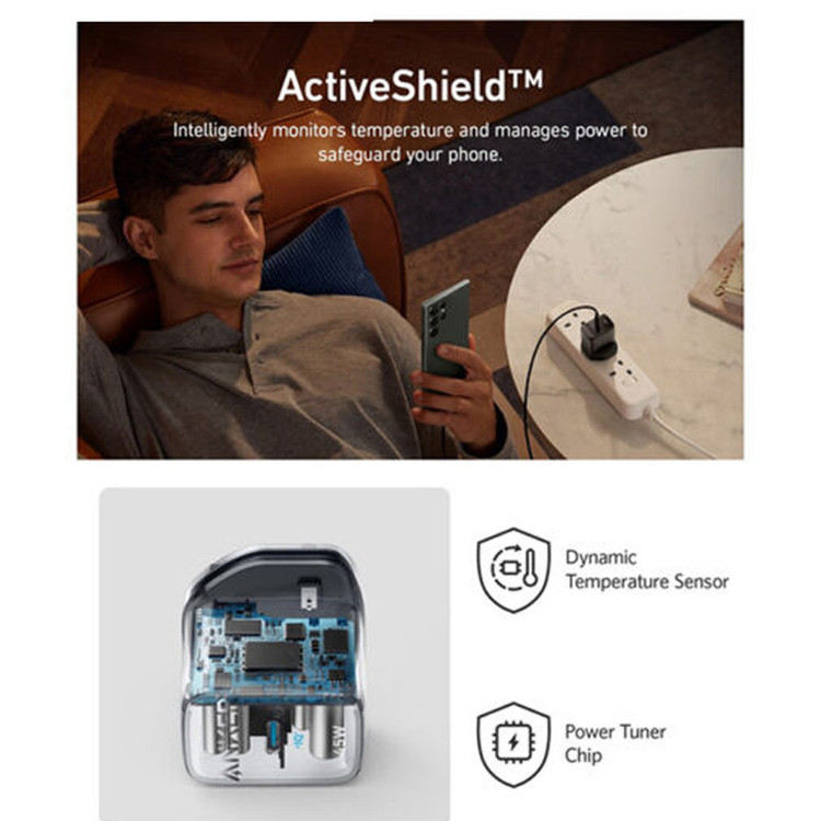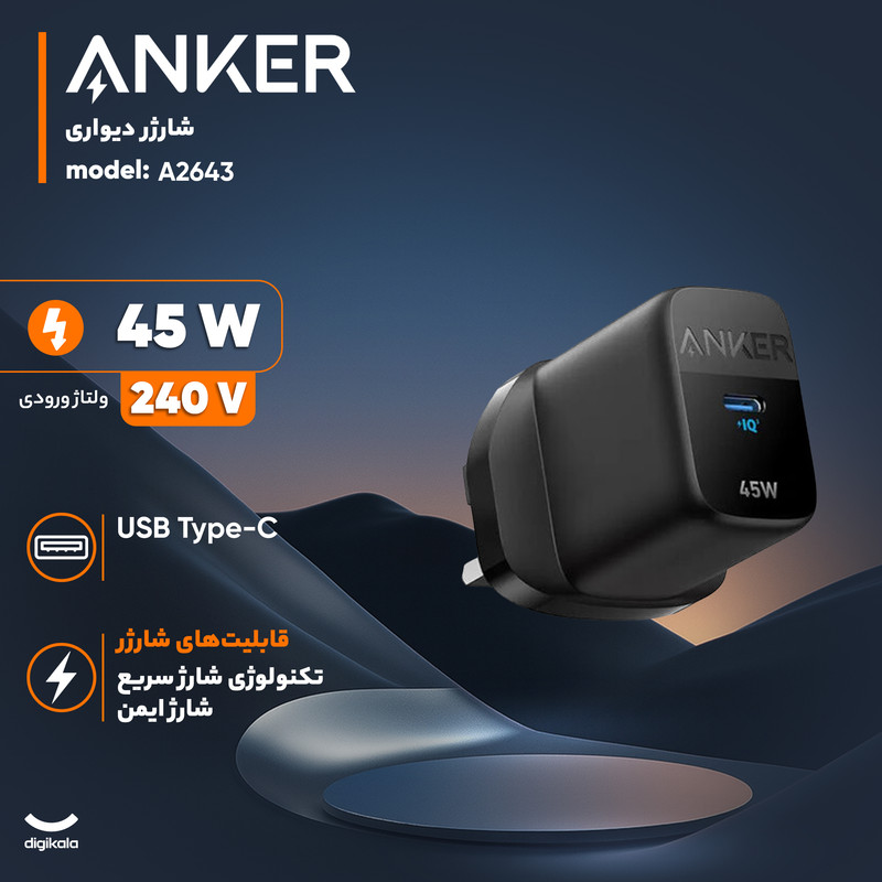 شارژر دیواری ۴۵ وات انکر مدل A2643 یکی از حرفهایترین و پیشرفتهترین شارژرهای موجود در بازار است که برای کاربرانی طراحی شده که به دنبال ترکیبی از سرعت، امنیت و فناوری روز هستند. این محصول با بهرهگیری از جدیدترین نسل فناوری GaN (Gallium Nitride)، ضمن کاهش چشمگیر اندازه، بازده بالاتر و کنترل حرارت بهتری نسبت به شارژرهای سیلیکونی سنتی دارد. بدنهی شارژر از پلاستیک فشرده باکیفیت بالا ساخته شده و تنها ۹۰ گرم وزن دارد، ازاینرو حمل آن برای استفاده روزمره و سفر کاملاً آسان است. شارژر A2643 از یک درگاه USB Type‑C با توان خروجی حداکثر ۴۵ وات بهره میبرد و میتواند انواع گوشی، تبلت و حتی لپتاپهای سبک را با سرعتی چشمگیر شارژ کند. این درگاه از ولتاژهای ۵، ۹، ۱۲، ۱۵ و ۲۰ ولت با شدت جریان حداکثر ۳ آمپر پشتیبانی میکند و تنظیم هوشمند توان خروجی باعث میشود هر دستگاه، دقیقاً انرژی موردنیاز خود را دریافت کند. فناوری PPS (Programmable Power Supply) نیز آن را برای سری جدید گوشیهای سامسونگ به گزینهای ایدهآل تبدیل کرده است، زیرا امکان تغییر پویا در ولتاژ و جریان را جهت شارژ کاملاً بهینه فراهم میسازد. یکی از ویژگیهای ویژهی این مدل، سیستم ActiveShield™ است که دمای شارژر را بیش از ۲۰ بار در هر ثانیه پایش میکند تا در صورت افزایش حرارت یا جریان، عملکرد بلافاصله تنظیم شود. همچنین فناوری اختصاصی MultiProtect™ انکر، از دستگاه در برابر نوسانات برق، اتصال کوتاه و شارژ بیشازحد محافظت میکند. به لطف ورودی ۱۰۰ تا ۲۴۰ ولت، این شارژر در هر کشور و با هر ولتاژی بدون نیاز به مبدل قابل استفاده است. اتصال شارژر به برق از طریق سه پین استاندارد انجام میگیرد و طراحی مینیمال آن باعث میشود بهراحتی در هر پریزی قرار گیرد. این مدل فاقد کابل همراه است تا کاربر بتواند کابل Type‑C مورد نیاز خود را بسته به نوع دستگاه انتخاب کند. اگر به دنبال شارژری پرقدرت، کوچک، ایمن و آیندهنگر هستید، انکر A2643 با فناوری GaN و توان ۴۵ وات یکی از کاملترین گزینههای موجود برای گوشیهای هوشمند، تبلتها و لپتاپهای جدید است.